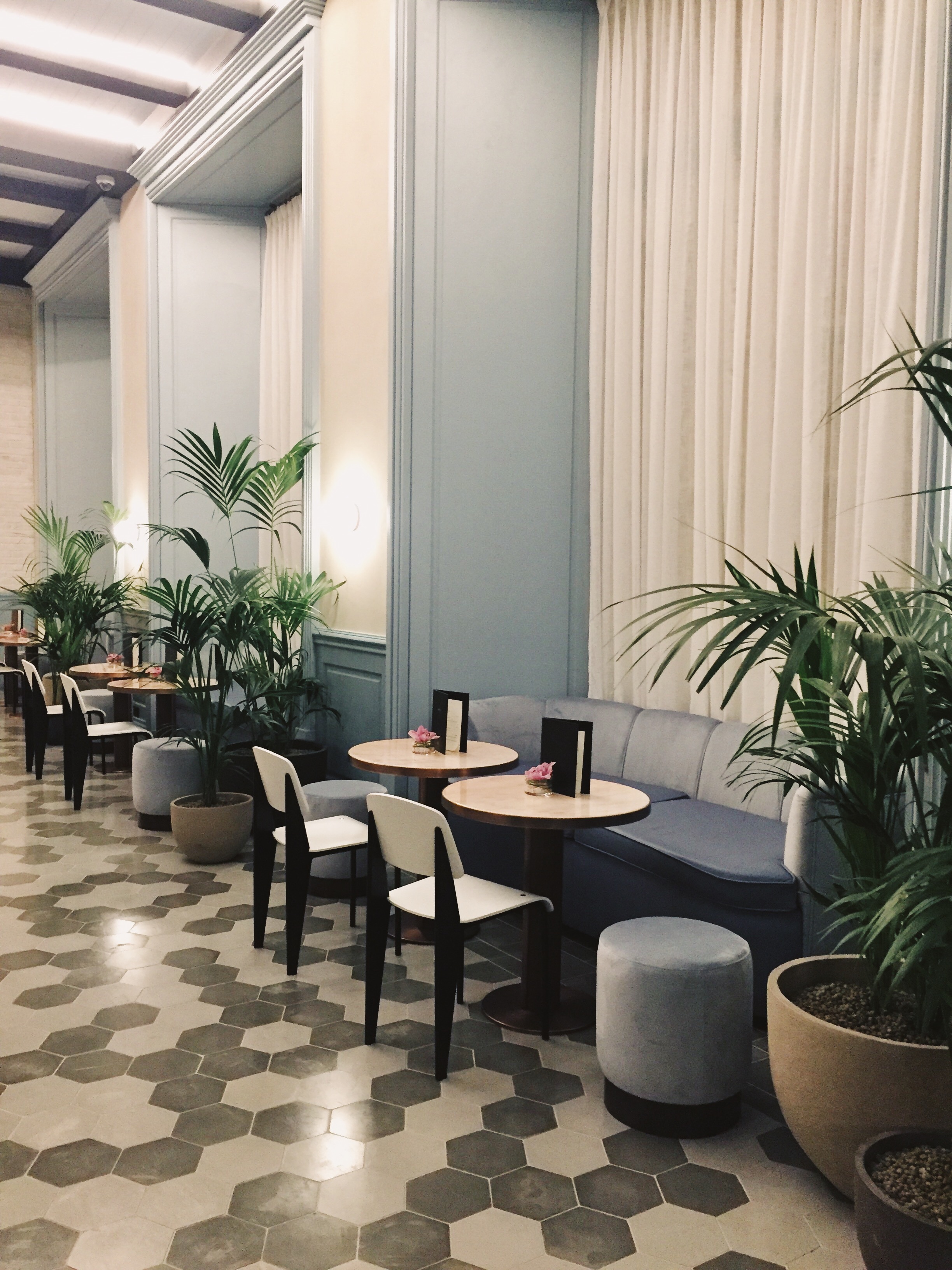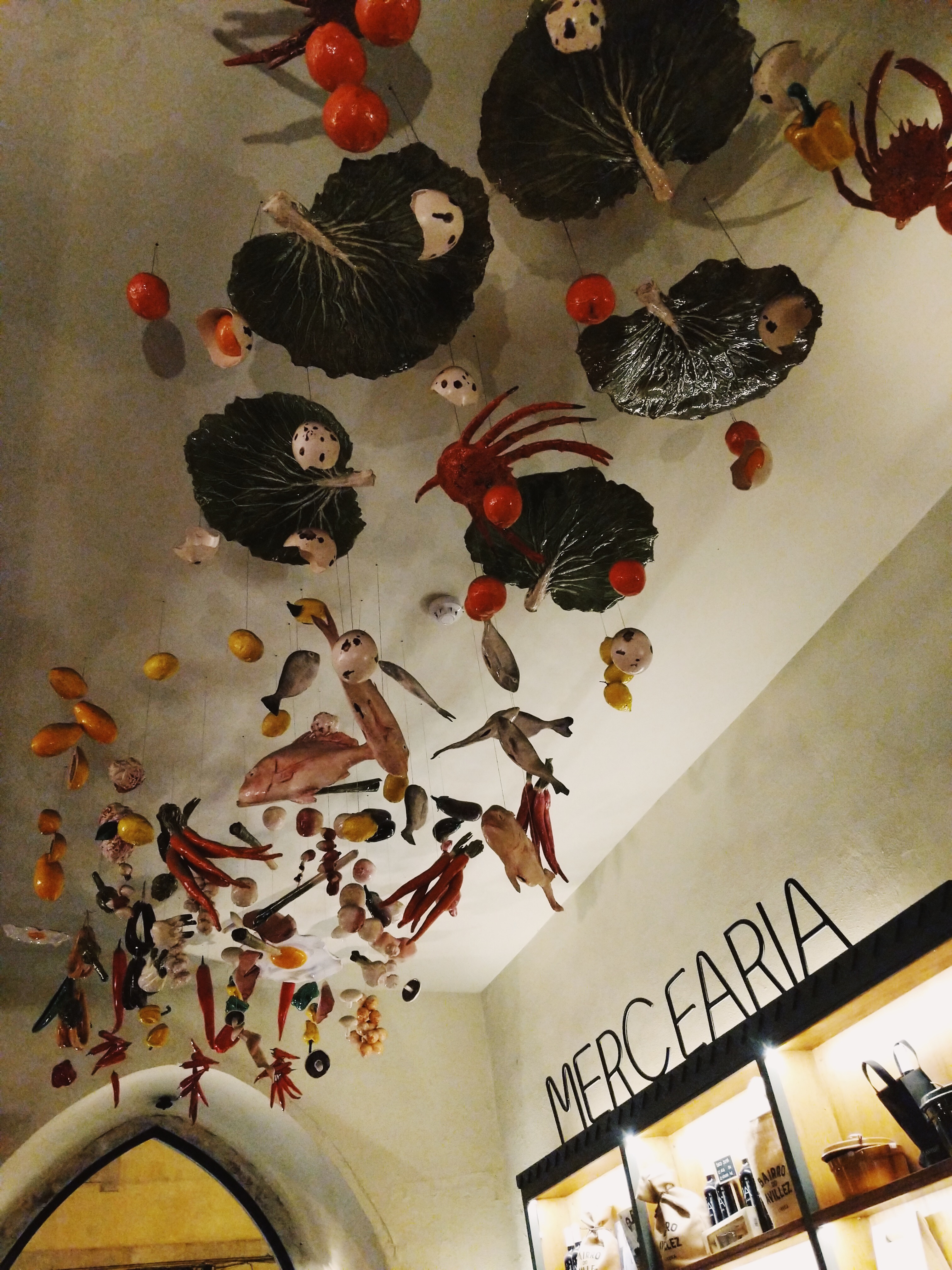 Situated in the heart of the city, the restaurant Bairro Avillez by the famous Portuguese chef José Avillez is a real experience. The 1000m² space is separated into: Mercearia (gourmet deli), a Taberna for shareable plates like super tasty iberian pork and tuna sandwiches; Páteo a more upscale restaurant for seafood; and Beco is the corner where an internationally-inspired menu is accompanied by a cabaret show. The interior inspired by a typical Portuguese neighbourhood welcomes you with a huge tiled mural of pigs and ceramic vegetables and fish that hang from the ceiling and are glued to the wall. The Páteo consists of a separate patio with round tables placed in the middle surrounded by the kitchen and bar. This restaurant is totally worth a visit, the food was so delicious that I can’t wait to be back in Lisbon to try out Avillez’s other restaurants. A few of them are located in walking distance, like Cafe Lisboa, Cantinho do Avillez, Pizzaria Lisboa, Cantinha Zé Avillez. Another interior gem is Avillez new restaurant Cantinho do Avillez Parque das Nações which is situated a bit outside of the center.