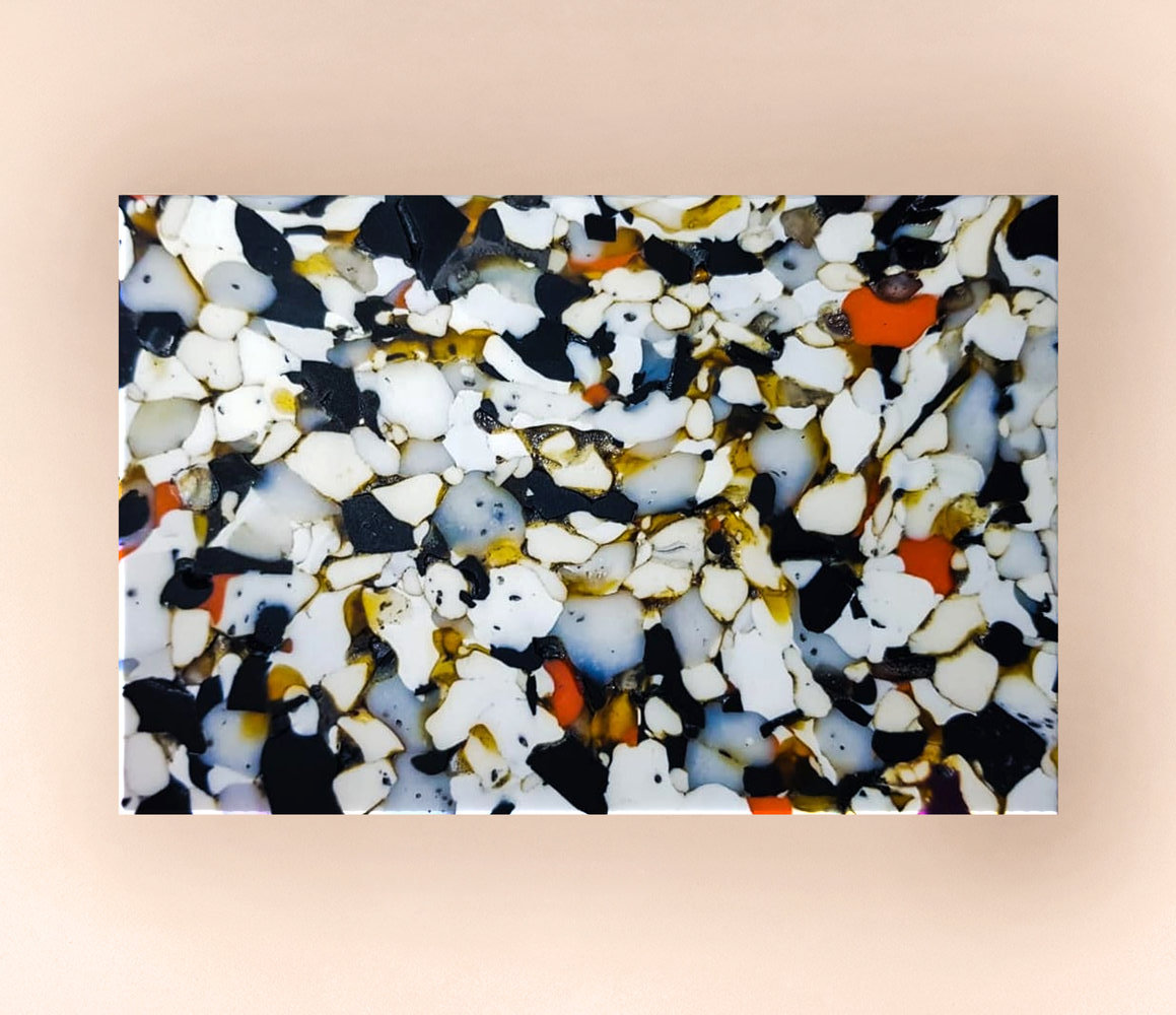 The Dutch startup Plasticiet produces sheet-plastic materials, which looks like terrazzo and natural stones, just made out of recycled plastic. They collaborate with recycling companies across Netherlands and give plastic garden furniture and buckets a second life. The sheets are ideal to create furniture or anything else you can imagine and available in different colours.