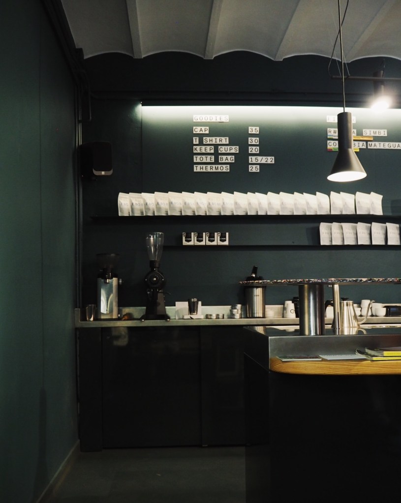 With three locations in town, Nomad is more than just a café, it’s a laboratory. They roast, serve, experiment and advise on coffee. I visited the Nomad Coffee Lab & Shop, which located in a beautiful passage in El Born. Here hidden away from the shopping street you can enjoy a wide range of beautiful coffees in a stylish green nordic interior while facing the natural greenery of the courtyard.